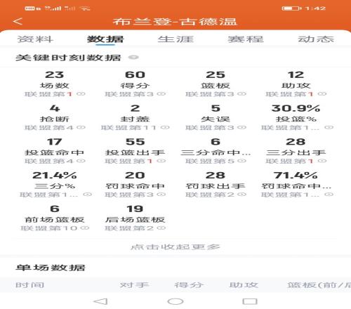 古德温拥有一个大心脏,绝对的关键先生。数据统计,上赛季他有23场比赛打出关键数据,累计贡献60分的关键得分,25个关键篮板以及12个关键助攻。这四项数据均联盟前五水平。