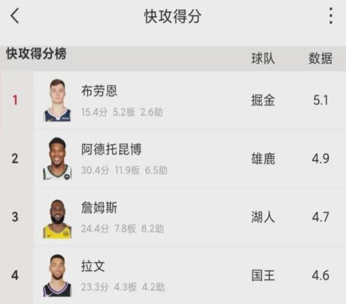 据统计,布劳恩上赛季场均快攻得分是5.1分,高居联盟第一,他就像是一个弹力发射器,随时可能启动冲刺。