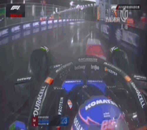 拉斯维加斯作为沙漠城市,全年降水稀少,不过排位赛开始前,整个城市却下起了雨!大家只能以全雨胎开始排位赛。Q1开始后,赛段黄旗不断,维斯塔潘很快找到节奏刷紫,拉塞尔随后以1:53.144的成绩领跑,最后一分钟时阿尔本上墙,好在他离维修区不远,直接进站。