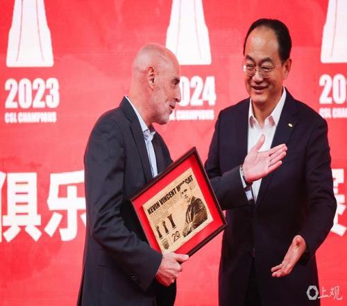 徐根宝指导亲临现场,武磊、颜骏凌、吕文君、王燊超、刘若钒、张琳芃、蒯纪闻、李新翔几位出自崇明基地的海港球员,将冠军奖牌佩戴在徐根宝的胸前,表达他们对恩师的感谢,场面温馨感人。