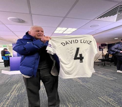 大卫路易斯送签名球衣给退休员工,后者为切尔西工作了56年